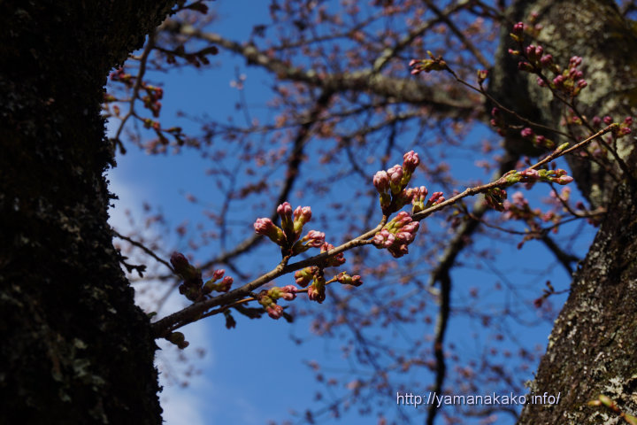 忍野の鳥居地トンネル手前の道路沿いの桜がだいぶ咲き揃って見頃となってきました。花が小さめなので富士桜かと思いますが、定かではありません。忍野の新名庄川沿いの桜はポツポツと咲きはじめてきたところです。