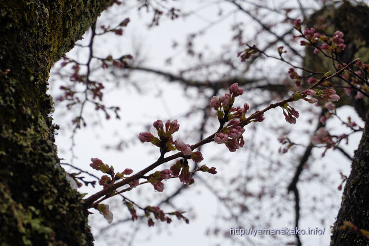 土日に咲くかと思っていましたが、定点観測のこの枝はまだでしたが、この木でもほかの枝ではぽつぽつと咲き始めました。