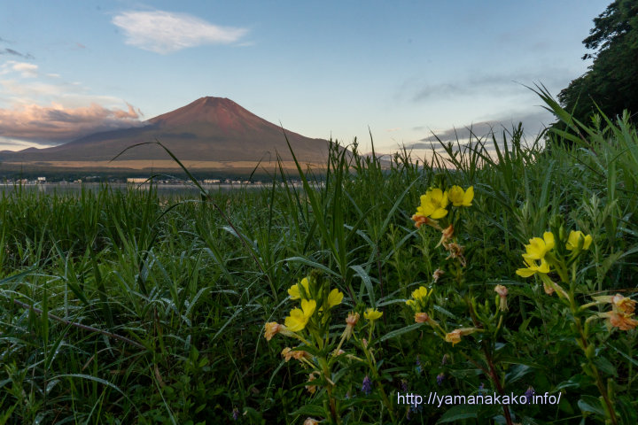20年05~08月 湖畔の待宵草 2020年8月13日 山中湖人 コメントする 待宵草毎年、夏になるとたくさんの待宵草が湖畔で咲きますが、今年は山中湖水増量のため、湖畔が少ないのであまり咲いていません。夏富士にはこの黄色い花が似合います。 昨日は投稿した際にすでに真夏日を記録しましたが、雷雨となったために、その後はあまり気温は上がらず、だいぶ過ごしやすくなりました。今朝は最低気温が18.5度と昨日より低くなって、昨日はこの時間ですでに30度を記録していましたが、今日はまだそこまで上がっていません。雲も多めなので今日は真夏日とならないかもしれません「 希望(^^; 」。 午前10時の状況 気温:28度 天候:晴れ Tweet Check Share on Tumblr