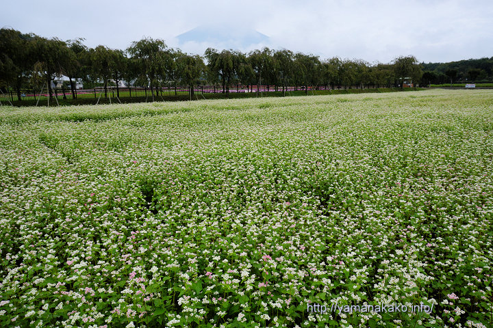 花の都公園のそばの花県道沿いのそばの花を先日紹介し、そちらもまだきれいに咲いていますが、奥側の畑でも写真のように咲き始めました。今朝はまだ雲が多く富士山は輪郭がちょっと見えた程度でしたが、また山頂付近では雪が降ったようです。