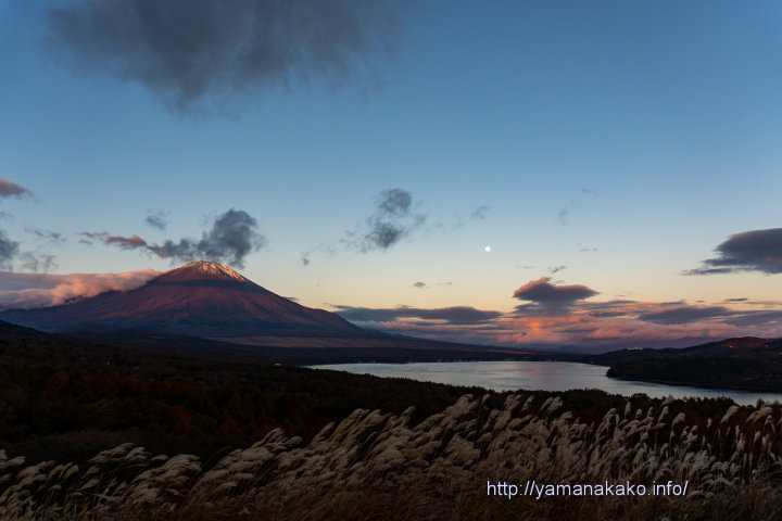今朝はまだ晴れていて、パノラマ台からは南アルプス方面の上に月も見られました。富士山の雪はだいぶ少なくなってしまいましたが、ススキの穂が揺れて秋の深まりを感じます。