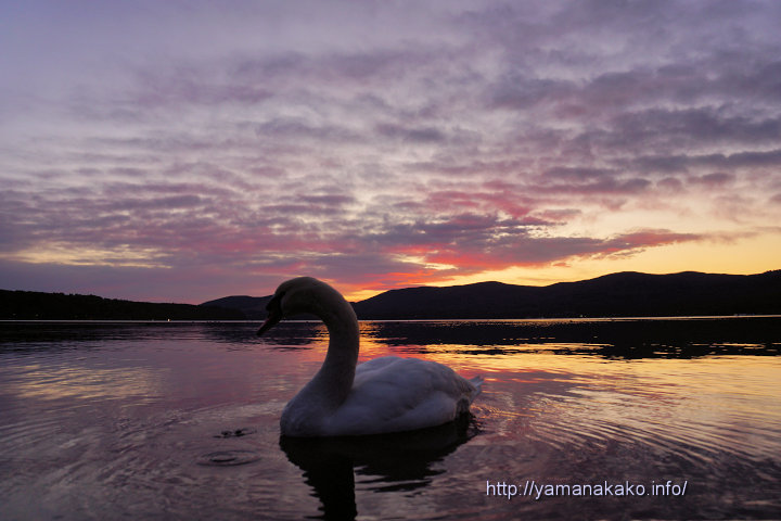 少し朝焼けの中の白鳥
