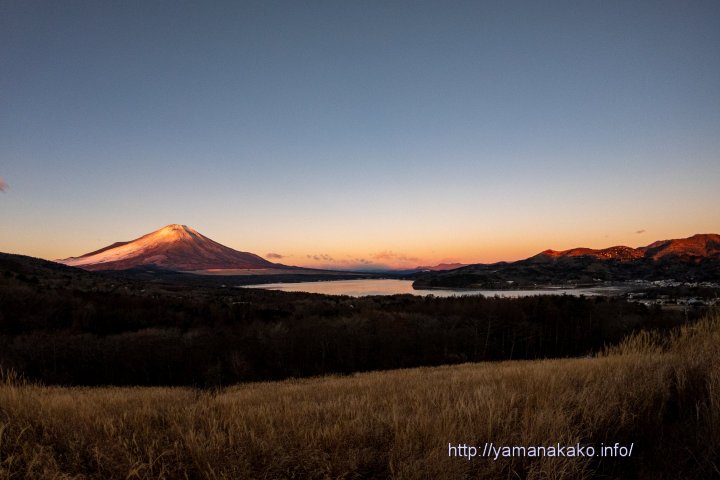 今朝は空気が澄んでいて、富士山には雲がなく、紅富士を期待しましたが、紅色には染まりませんでした。今の時期は、富士山に日が当たる前に南アルプス上空に、ビーナスベルトと地球影が見られることが多いのですが、今朝は雲のせいかあまり鮮やかではありませんでした。