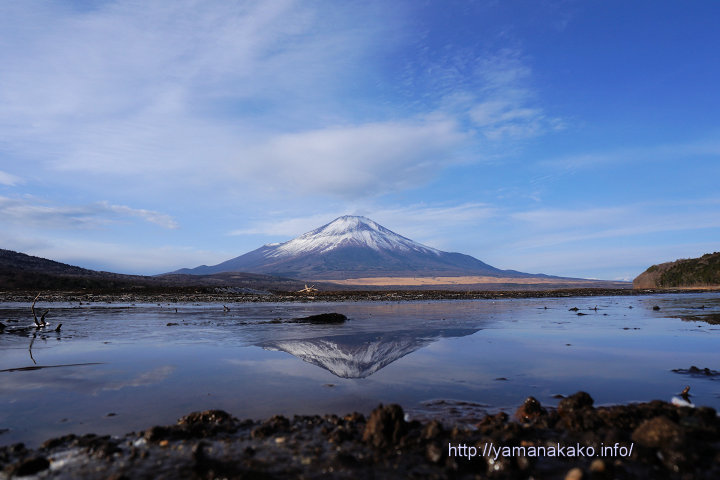 21年01~04月 逆さ富士 2021年1月5日 山中湖人 コメントする 氷のないところに逆さ富士山中湖交流プラザきらら横の大堀川は流れていませんが、河口付近には少し水が残っていて凍っています。そこの氷がないところでは波もなくきれいな逆さ富士が見られました。 今朝の最低気温は-7.5度で昨日とあまり変わりませんが、昨日より雲が多めなので日中は昨日の最高気温の6.9度は超えないと思います。 午前10時の状況 気温:4度 天候:晴れ Tweet Check Share on Tumblr