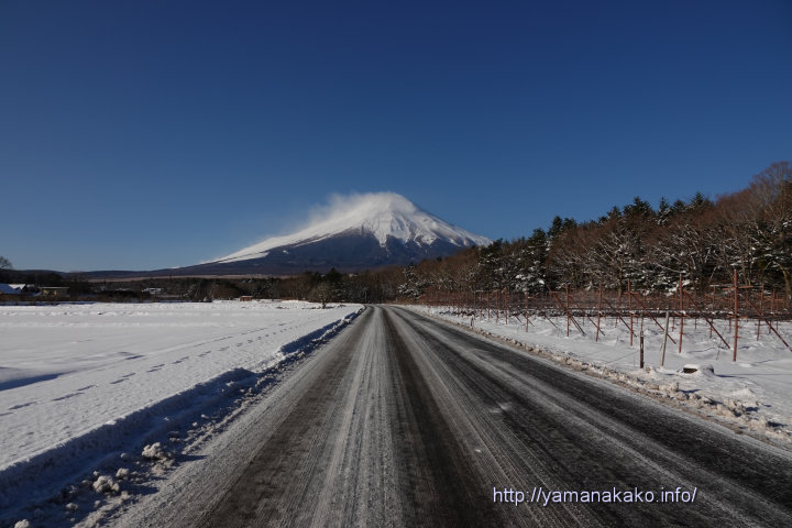 21年01~04月 また雪が降りました 2021年1月29日 山中湖人 コメントする 花の都公園内の県道から望む富士山昨日の投稿してから雪が降り始め、今朝までに10cmほどの積雪となり、写真のように道路にも残っていて滑りやすい状況でした。25日の投稿と27日の投稿とほぼ同じ場所から撮影しました。 昨日は結局投稿後に気温は上がらず、ずっと氷点下のままで、今朝の最低気温は日付が変わってすぐの-3.8度となっています。晴れていて日差しはありますが、北寄りの風が強く吹いていて気温は上昇していません。今日はこのまま寒い1日となりそうです。 午前10時の状況 気温:0度 天候:晴れ 道路状況:山中湖周辺の主要道路でも凍結箇所があります Tweet Check Share on Tumblr