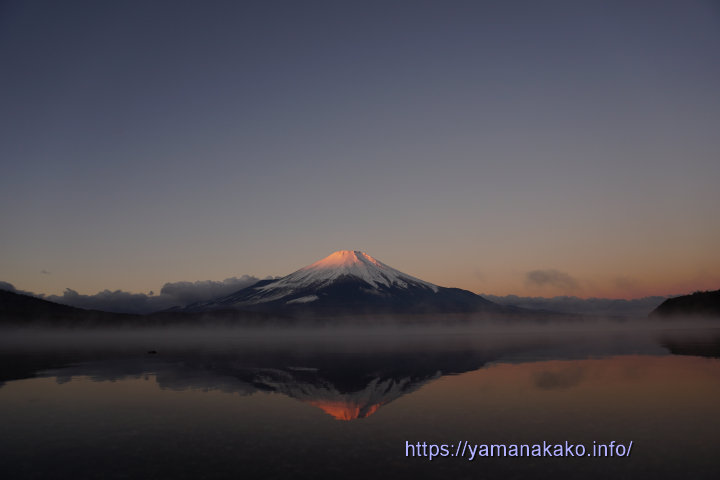 21年09〜12月 今朝の逆さ富士 2021年12月14日 山中湖人 コメントする ケアラシと逆さ富士今朝は紅富士になるかと期待して平野湖畔に行きましたが、写真の程度にしかなりませんでした。ただ冷え込んだせいか、ケアラシが出ていて、対岸の人工物は見えずいい感じではありました。 今朝の最低気温は-5.6度で、久しぶりに氷点下5度以下となり、寒い朝でした。今日は昨日と違い、雲が多めなので日中もあまり気温は上がらないようです。 午前10時の状況 気温:4度 天候:晴れ Tweet Check Share on Tumblr