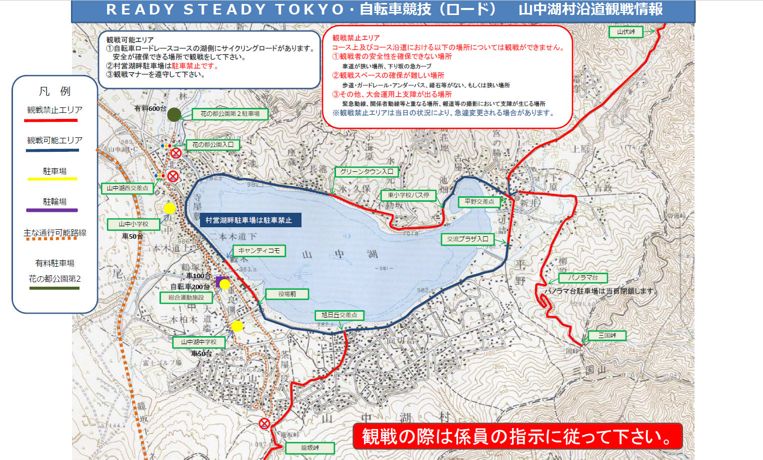 観戦に関する詳細は、山中湖村の観戦情報をご覧ください。