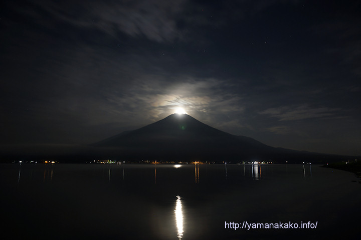 明後日ぐらいに月と富士山がいい感じになるのですが、明日からは天気が悪いようなので、まだ真っ暗な内に富士山頂に沈む月を撮ってきました。2時半頃に到着しましたが、すでに20~30人ぐらいが三脚をセットしてその瞬間を待っていました。今日は少し霞んでいて、月は明るいし富士山は暗いしでうまく撮れませんでした。