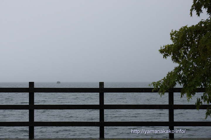 今日は久しぶりに朝から雨が降っていて、湖の対岸は見えず、冬の間、湖を賑わせていたドーム船も今朝は2艇だけが湖に浮かんでいるだけで静かな山中湖です。