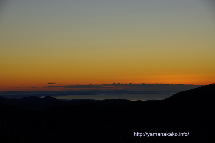 今朝は空気が澄んでいて、日の出前の大平山からは相模湾、三浦半島、東京湾、房総半島が見えました。日の出時の様子は過去にも投稿しているので、今日は海がよく見えるように日の出前の様子を選択してみました。