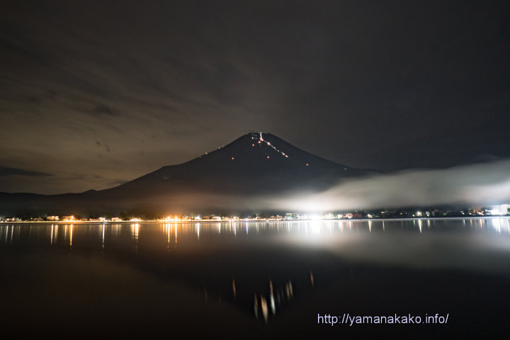夜明け前の富士山今日は富士山が見えていないので、25日(日)の夜明け前に撮った富士山です。山小屋や登山者の灯りがふもとからもよく見えましたが、このように見られるのもあとわずかとなりました。