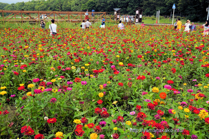 百日草畑花の都公園では今日も早くから多くの観光客が訪れていて、百日草畑は写真のような状況で、思い思いに記念撮影をしていました。長らく咲いていたひまわりは今朝はまだきれいでしたが、終盤になってきたような感じです。レイクガーデンのサンパチェンスは今がまさにピークといった感じでとてもきれいです。