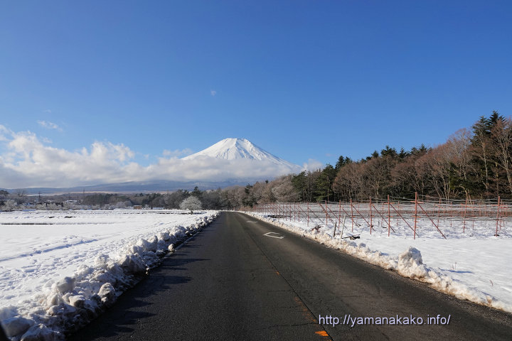 富士山に向かう道昨日までは山中湖周回道路にも若干雪が残っていましたが、今朝は乾いているところもあり、スムーズに走行できました。ただ脇道などはまだ雪の残っている箇所がありますのでご注意ください。