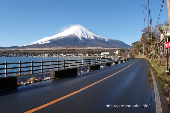 道路状況:山中湖周辺の主要道路に凍結はありませんが、朝晩は脇道など交通量の少ないところは凍結の恐れあり