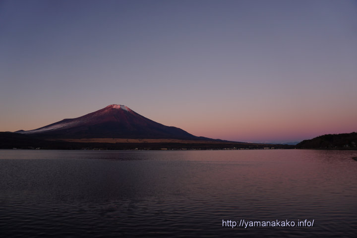 朝焼けの山中湖今朝は富士山とは反対方向の東の空がオレンジ色に染まり、とてもきれいでした。こんな時は赤富士や紅富士になることが多いのですが、今朝はあまり赤くなりませんでした。
