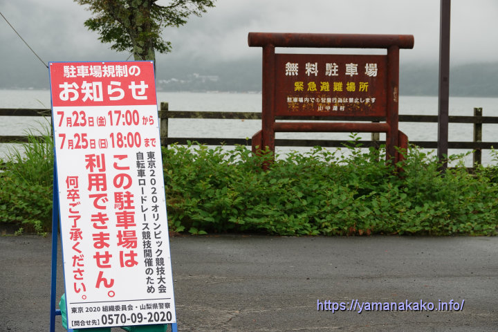 駐車場規制のお知らせ7月24日、25日にオリンピックの自転車ロードレース開催に伴い、7月23日17時〜25日18時まで山中湖畔の駐車場は使用できません。また山中湖周辺道路も開催当日は大幅な交通規制がありますのでご注意ください。