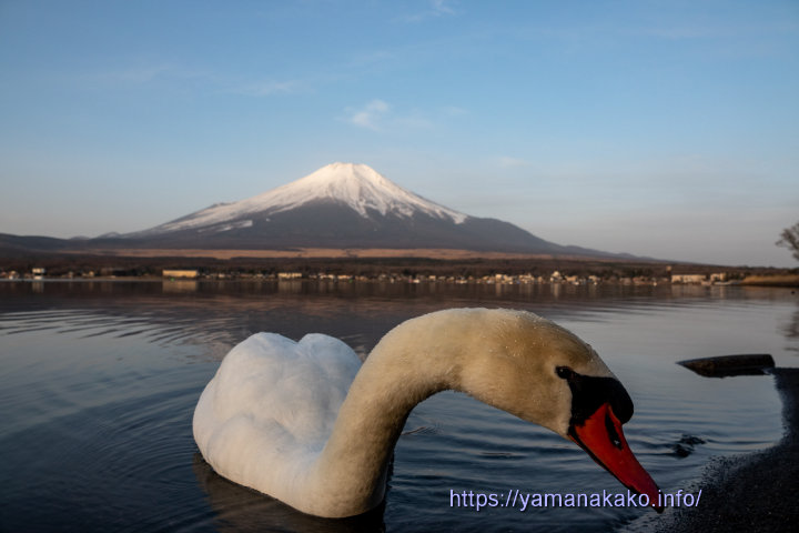 陸の上の白鳥朝のうちは雲が多めでしたがだんだんと晴れてきて、8時半頃には写真のように青空も広がってきて、富士山もよく見えたので平野湖畔に行ってきました。写真を撮っていたら白鳥が寄ってきて、被写体となってくれました。