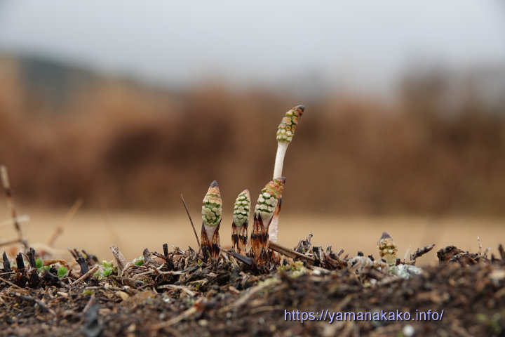 つくしが出てきた今年は寒い日が多かったので、ツクシが出てくるのが遅いかと思いましたが、ここのところ暖かさに誘われて大きくなってきたようで、2〜3日ぐらい前には出ていたようです。昨年よりは遅いですが平年並みぐらいかと思います。