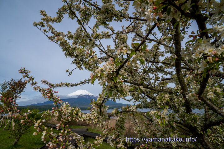 エゾノコリンゴの花と富士山山中湖交流プラザきらら内にあるエゾノコリンゴの花が咲き始めました。つぼみはピンクで花は白なので、咲き始めはまだピンクが残っていていい感じです。