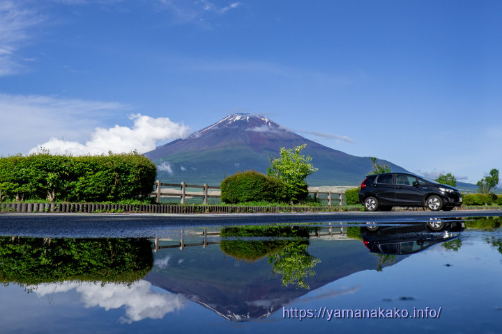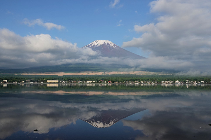 逆さ富士今朝は久しぶりに富士山が少しだけ見えたので、お気に入りの逆さ富士スポットへ行ってみました。しばらく見ないうちにずいぶんと雪が少なくなったように感じます。そういえばもう6月で山開きまであと1ヶ月・・・雪も少なくなるわけですね。