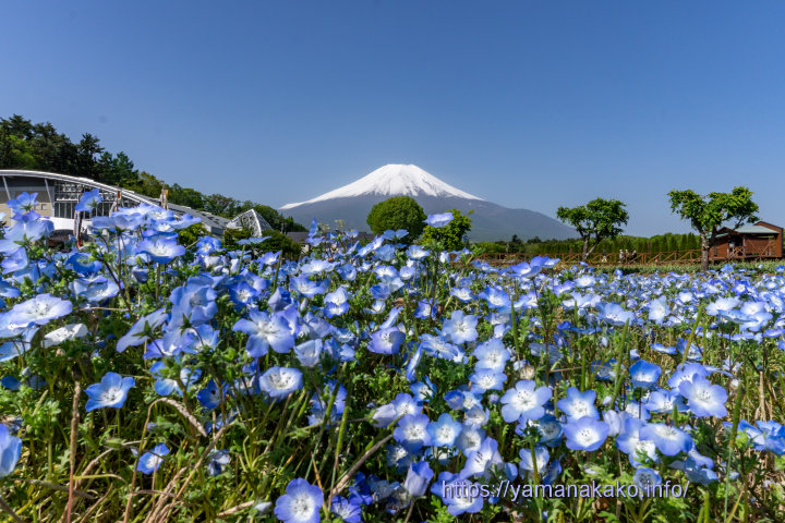 ネモフィラと富士山花の都公園のネモフィラは、ゴールデンウィーク明けには元気がありませんでしたが、まだ咲いていてなかなかきれいです。花の都公園は例年より早くチューリップが散って、今はネモフィラぐらいしか咲いていませんので、ご注意ください。