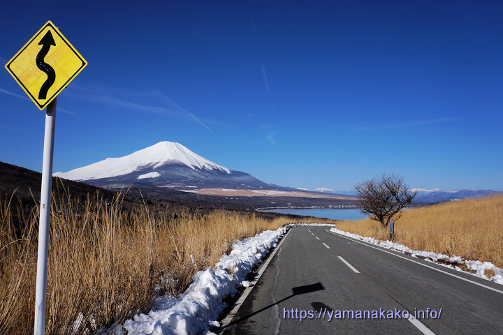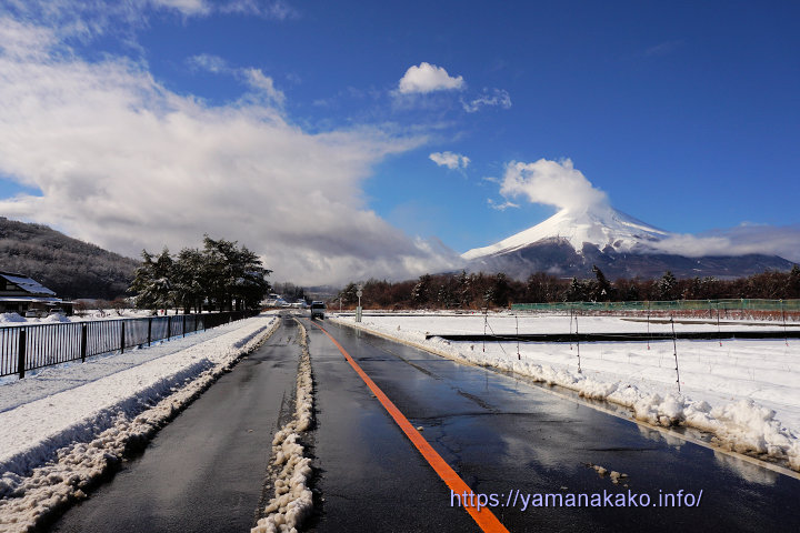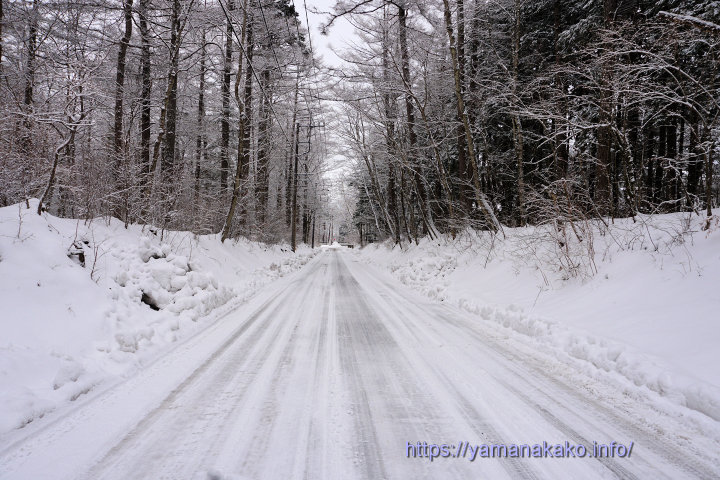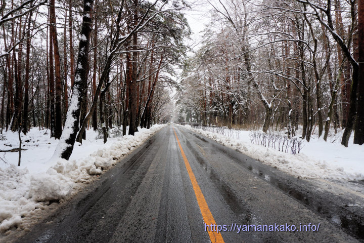 道路状況:山中湖周回道路に凍結はありませんが、その他の道路は積雪箇所あり