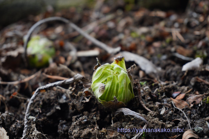 ふきのとうの芽毎年、2月の中旬~下旬ぐらいにふきのとうを見かけるのですが、今年はいつもある場所では見つけることができず、道端で芽が出てるのを見つけました。ちょうど食べ頃のようですが、このまま残しておきたいと思います(他の誰かが採ってしまうかもしれませんが・・・)。