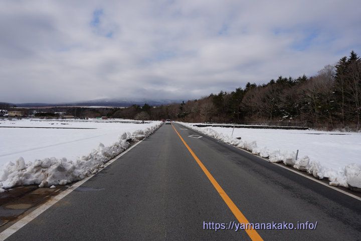 道路状況:山中湖周回道路に凍結はありませんが道幅は狭くなっており、その他の道路は凍結箇所あり