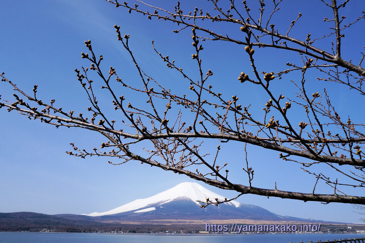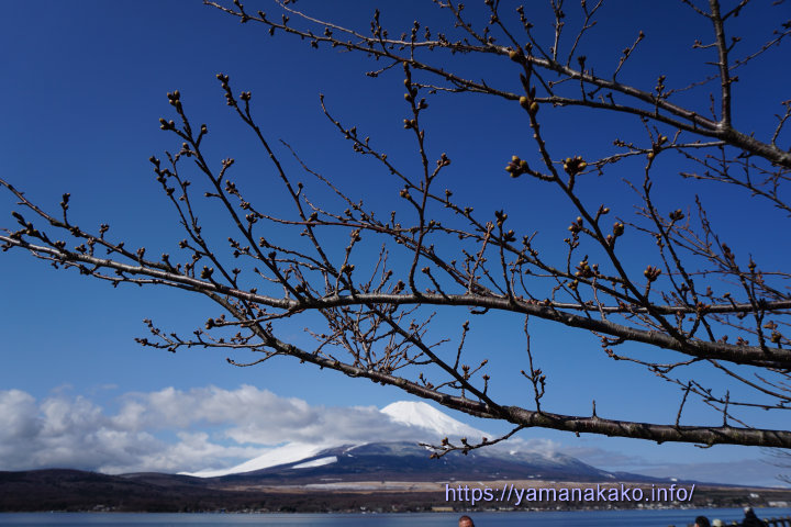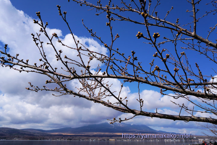 近くの桜の名所である新倉山浅間公園の桜も見頃を迎え、連日多くの観光客で賑わっているようですが、忍野の新名庄川沿いの桜はまだこれからです。