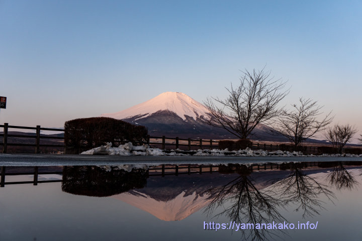 道路状況:山中湖周辺主要道路に凍結はありませんが、その他の道路には残雪あり