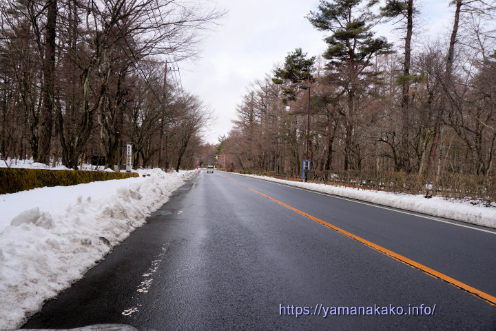 道路状況:山中湖周回道路に凍結はありませんが、その他の道路は積雪箇所あり