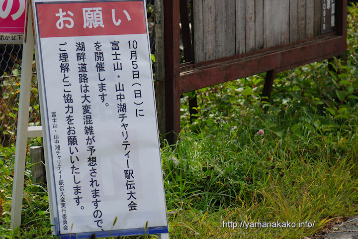 今週末は、山中湖チャレンジカップテニス大会が平野地区で開催され、5日(日)には富士山・山中湖チャリティー駅伝大会が行われます。駅伝大会は9時半スタートで山中湖を2周、サイクリングロードと湖畔道路を走りますのでドライバーの皆さんはご注意ください。