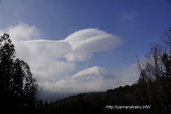 吊し雲と笠雲が出ていて、湖畔からもチラッと見えたので、車で行けるところまで少し登って撮ってみましたが、やっぱり雲が邪魔で少ししか見えませんでした。それにしてもなんか青空が見えたのは久しぶりって感じです。