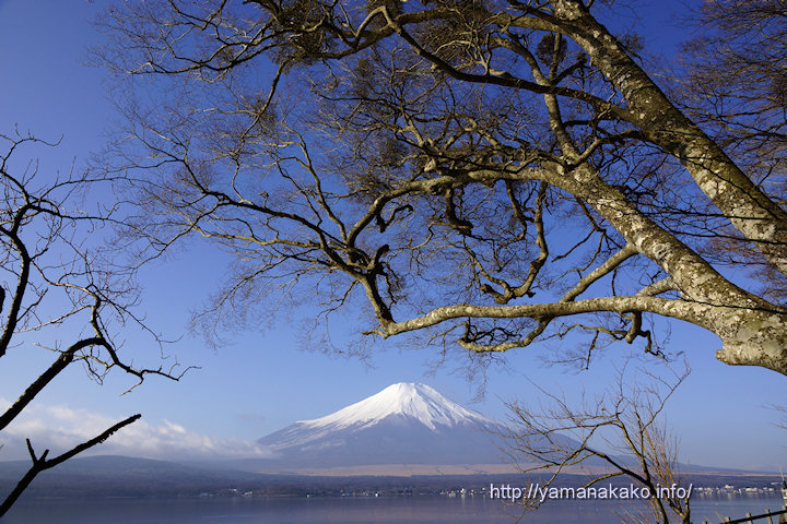 朝の内は曇っていましたがだんだんと晴れて、写真のように青空が広がってきました。年末年始はずっといい天気で、連日きれいな富士山が見えて、早朝から多くの人で賑わいましたが、今日は人も少なめでいつもの冬の山中湖といった感じでした。