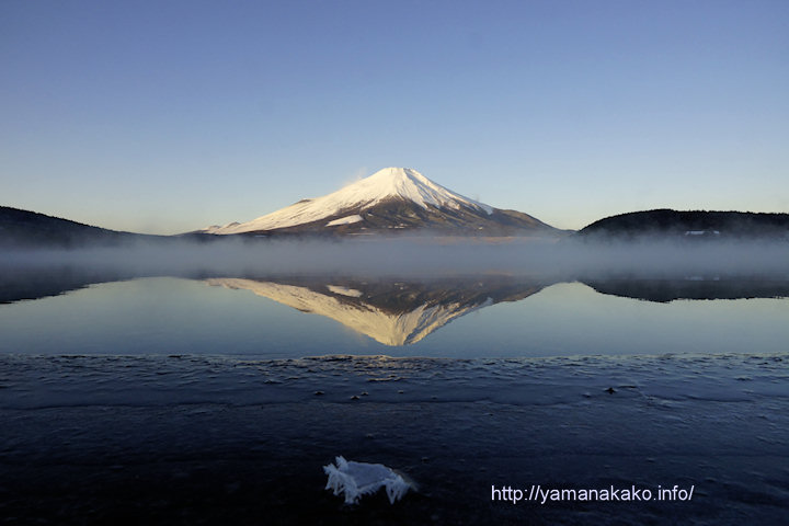 17年01〜04月 逆さ富士 2017年1月12日 山中湖人 2件のコメント 今朝はあまり紅くなりませんでしたが、風がなくきれいな逆さ富士が見られました。この写真を撮った時には毛嵐が多くなりちょうど対岸を隠し、人工物が見えず湖の縁も凍っていていい感じとなりました。 今朝の最低気温は氷点下12.1度と、今シーズン3度目の氷点下二桁で一番の冷え込みとなりました。昨日も日中はあまり気温は上がらず最高気温が3.7度でしたが、今日もそのくらいまでしか上がらない予報となっています。 午前10時の気温:1度 天候:晴れ 道路状況:幹線道路にも凍結箇所あり Tweet Check Share on Tumblr