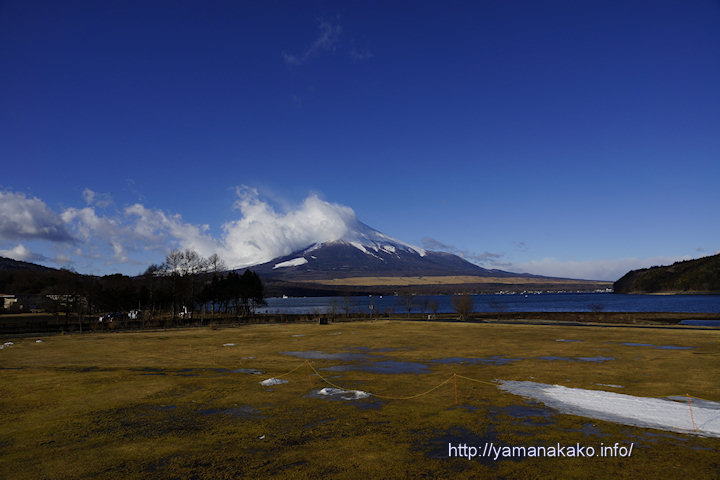 道路状況:この時間山中湖周回道路に凍結はありませんが、その他の道路や朝晩は路肩の雪が解けて凍ることもありますのでご注意下さい。