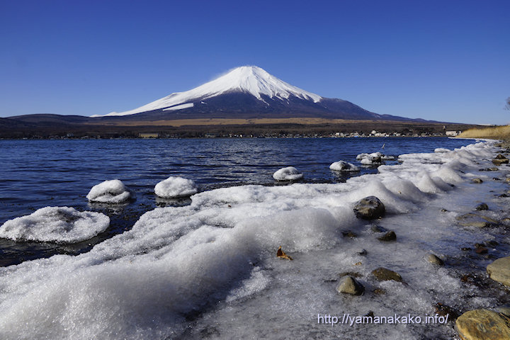 道路状況:山中湖周回道路に凍結はありませんが、その他の道路や朝晩は路肩の雪が解けて凍ることもありますのでご注意下さい。