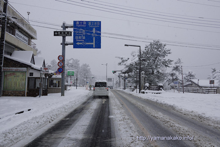 道路状況:山中湖周回道路に凍結はありませんが、標高の高いところでは路面凍結がありますので注意