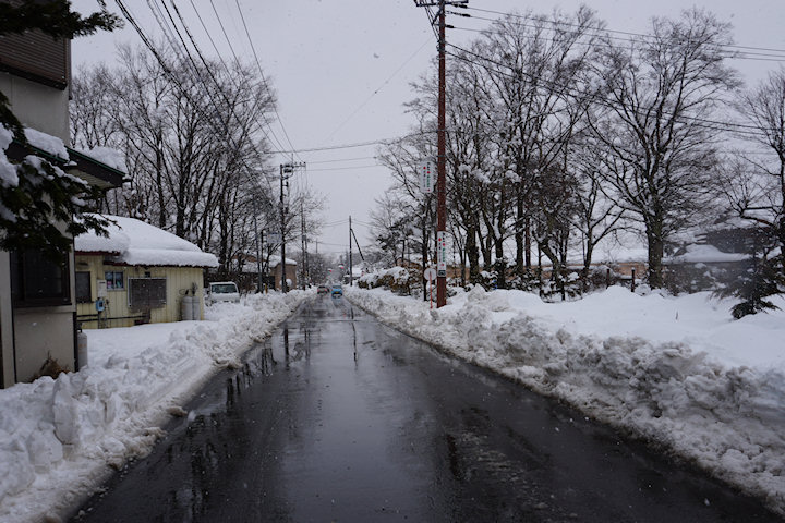 道路状況:幹線道路は除雪されていますがまだところどころに残雪あり、その他の道路はまだたくさんの雪が残っています