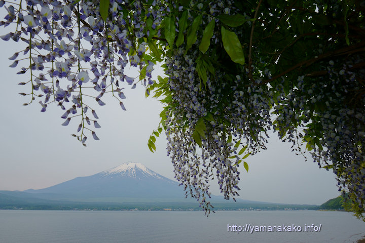 毎年5月の下旬頃に見ごろを迎える長池湖畔のサイクリングロード沿いにある藤ですが、今年は開花が遅れていて先週ぐらいから咲き始め、今が満開という感じです。肉眼だときれいに見えますが、すでに葉っぱもたくさん出ていて、花に日が当たらず富士山と一緒だとうまく撮れません。