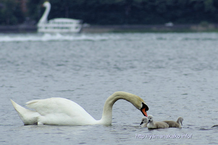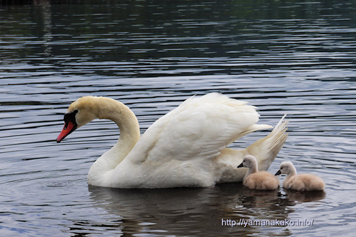 白鳥のヒナが3羽誕生し、今朝は親鳥と仲良く泳いでいました。産まれてから1週間近く経過しているようで、元の巣からはかなり遠いところにいてなかなか見つかりませんでした。ぼけているバックの白鳥は親ではなく、白鳥の湖です(^^;