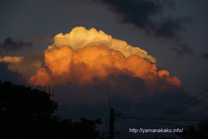 今日の早朝は富士山が見えていましたが、8時頃には雲に遮られて見えなくなってしまったので、昨日の夕方撮った写真です。午後3時頃から山中湖は雲に覆われてきて、雨が降ったところもありましたが、夕方になって晴れてきたところに現れた雲は、不思議と3色になっていました。この後電柱のないところに移動しようと向かいましたが、途中で普通の雲になってしまいました。