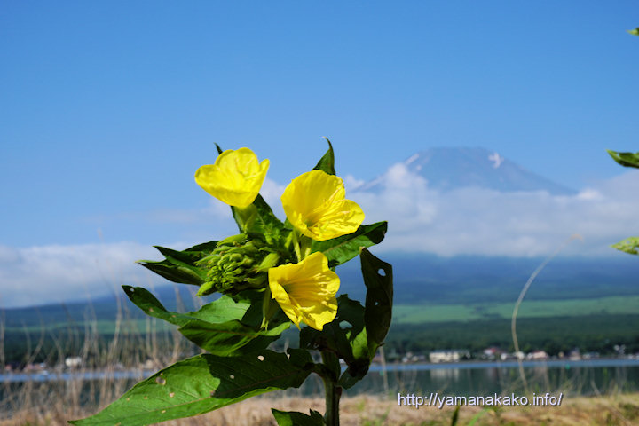今日も富士山は朝から霞んでいてよく見えなかったので、日が高くなってから長池湖畔に咲くマツヨイグサを入れて撮ってみました。今年は湖畔にある草を刈ってしまったので、この時期にたくさん咲く待宵草もほんの少し残っているだけです。そして富士山はこの後また雲に隠れて見えなくなってしまいました。太宰治の短編「富嶽百景」の一節「富士には月見草がよく似合う」の月見草は、この待宵草だと言われていますが似合ってますか?