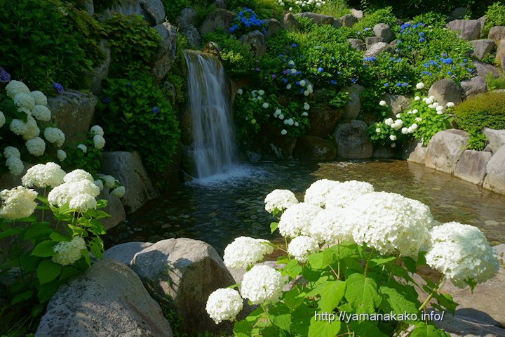 梅雨が明けて夏本番となり、連日各地で猛暑日や真夏日が観測されています。山中湖でも18日に真夏日となり、その後も最高気温が27〜28度の日が続き、日なたはかなり暑いです。もっとも日陰はかなり涼しく風が心地いいので、やはり避暑地なんだと感じます。そんな避暑地にふさわしい景色を探して、花の都公園にある石清水の滝を撮ってみました。涼しく感じるでしょうか。