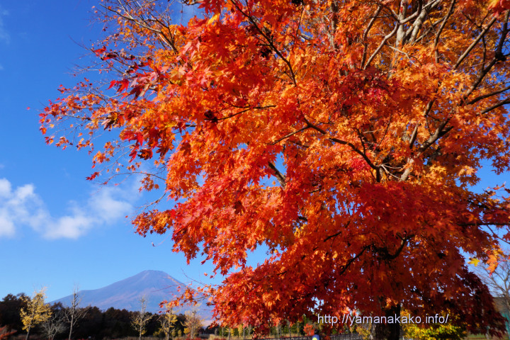 山中湖周辺の紅葉は見頃のピークを迎え、3連休は多くの人で賑わいました。写真は山中湖交流プラザきららからですが、山中湖夕焼けの渚紅葉まつりが行われている旭日丘湖畔緑地公園も、会期中の今週末まではきれいに色付いていると思います。