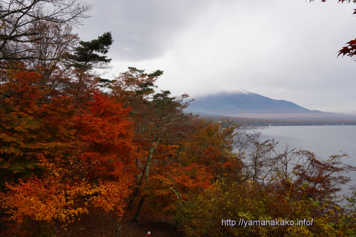 写真は小さいのでよくわかりませんが、富士山の五合目ぐらいまで雪化粧しています。今年はもう半ばあきらめていましたが、晴れたら紅葉と雪化粧した富士山が見られそうで楽しみです。