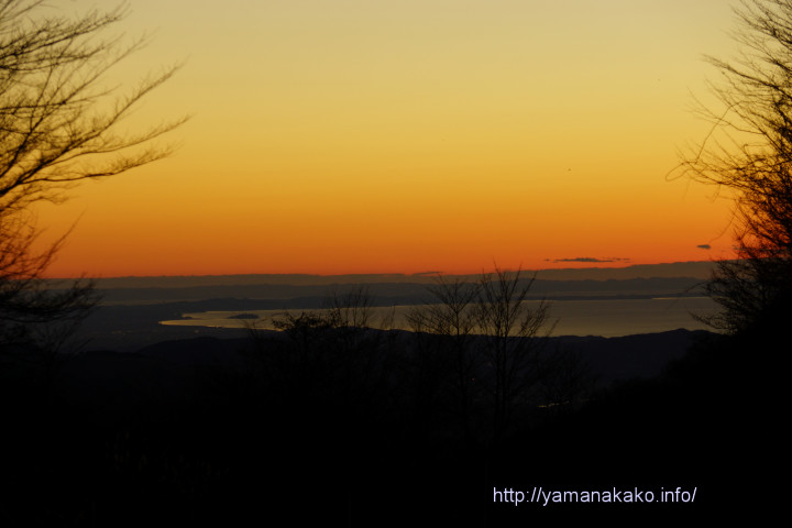 今朝は風が吹いていて空気が澄んでいたので、パノラマ台を通り越して、三国峠の神奈川県境まで行ってみました。予想通り江ノ島〜三浦半島〜東京湾〜房総半島まで見えましたが、冬至の前後1ヶ月ぐらいはこの場所から日の出は見られませんので、今朝は日の出前の様子です。
