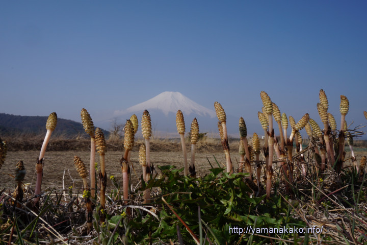 ツクシは大きくなりました1週間ほど前にこのツクシが出ているのを見かけ、ときどき見に行っていましたが、なかなかここに載せる機会がありませんでした。だいぶ大きくなってここではそろそろ終盤となりそうなので、霞んだ富士山をバックに撮ってみました。春らしい感じがします。