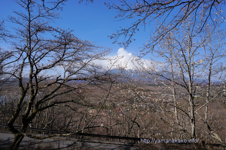 いつも定点観測している場所は、下の写真の左側に写っている木の下の枝の方ですが、遠景で見るとこんな感じとなっています。以前は桜の木がもう少し小さかったので、富士山頂も見えましたが、この位置からだと枝に隠れて見えなくなってしまいました。
