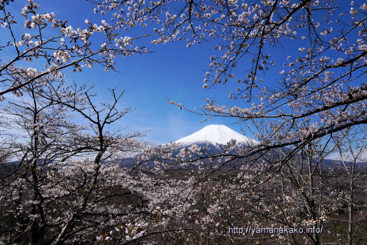 忍野村を流れる新名庄川沿いの桜並木も見頃になり、早朝から多くのカメラマンが訪れていました。この写真の時は日が陰っていましたが、なかなかいい感じに見られました。